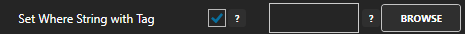 The Table or View, Where String, and Order By String properties can optionally be set dynamically from a string tag. The properties Set Table Name with Tag, Set Where String with Tag, and Set Order by String with Tag control the ability to set the respective property values dynamically from another string tag. These properties allow for the determination of which table and record are accessed for reading and updating from other tag values.