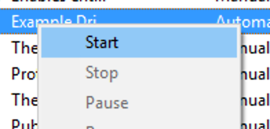How the service is configured to start. Manual means the service must be started by a user and it will not start when the server reboots. Automatic will attempt to start the service when the server reboots. This is preferable for infrastructure components such as a Driver.