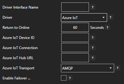 - Enter a meaningful Driver Interface Name that you will refer to this physical connection when defining Tags with an Azure IoT Data Source.